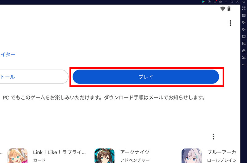 インストールが完了すればすぐにPCで遊べます。「プレイ」をクリックして遊んでみましょう!
