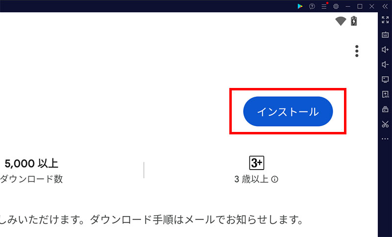 「インストール」をクリックしてGooglePlayストアからゲームをPCにインストールします。
