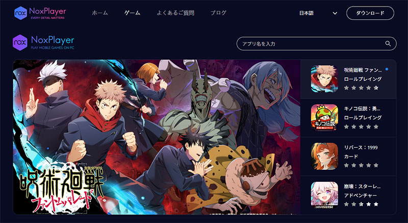 - NoxPlayer公式サイト(NoxPlayer 公式 ダウンロード)にアクセス