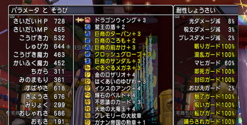 装備には見た目の数値以外に「耐性」という特殊効果があります。例えば氷の盾は火炎攻撃を軽減し、ゴールドメイルは呪文ダメージを減らしてくれます。