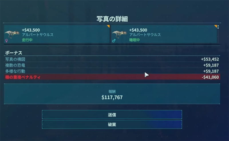 一枚で数十万ドル稼げることもあり、倒産の危機を救ってくれる頼もしい収入源になります。複数の恐竜や珍しい行動を撮影できれば、さらに報酬がアップします。